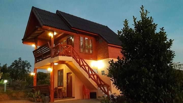 บ้านการเกด บ้านไม้ 2 ห้องนอน ห้องละ1เตียง(5ฟุตนอนได้ห้องละ2คน ถ้าสมาชิกเพิ่มอีกจัดเตียงเสริมได้ห้องละอีก1คน) 1 ห้องน้ำในบ้านและอีก 2 ห้องน้ำข้างบ้าน ระเบียงชมวิวกว้างหน้าบ้าน ทีวี ตู้เย็น แอร์ เครื่องทำน้ำอุ่น ฟรี wifi พักได้ 4-6 คน พร้อมอาหารเช้า ช่วงฤดูกาลท่องเที่ยว ศุกร์ เสาร์ และวันหยุดยาว นอกจากนั้นราคาห้องพักลดลง 15 % ติดต่อลาวัลย์ โห้ลำยอง โทร 0867374553 เทอญทูล สุขสี 0909217025 ราคาห้องพัก: